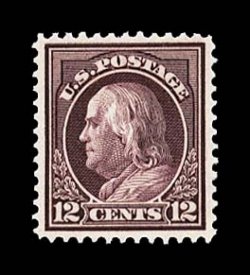 809 nh 417 image#417, 12c Claret brown, exceedingly well centered, strong rich color, o.g., n.h., extremely fine; 2001 PF certificate. (Image) $110.00