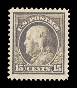 810 nh 418 image#418, 15c Gray, gem mint example, possessing extraordinary centering within extravagant jumbo margins not often associated with this value, plus its color and impression are far more intense than usual on immaculate paper, pristine o.g., n.h., extremely fine and striking. (Image) $190.00