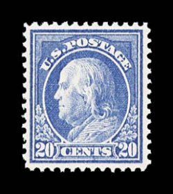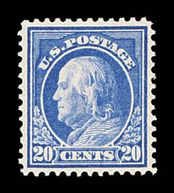 814 nh 419 image#419, 20c Ultramarine, pristine mint example, possessing much deeper color and impression than usual on bright fresh paper, unusually well centered, immaculate o.g., n.h., extremely fine; 1988 PF certificate. (Image) $425.00