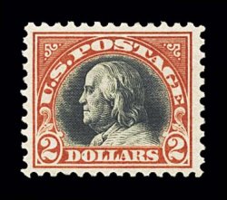 891 og 523 image#523, $2.00 Orange red and black, well centered within large margins, strong color, o.g., l.h., very fine; 1983 PF certificate. (Image) $600.00
