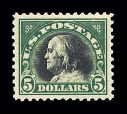 894 nh 524 image#524, $5.00 Deep green and black, very well centered and margined, strong colors, pristine o.g., n.h., extremely fine. (Image) $400.00