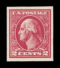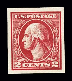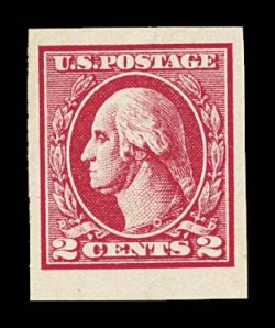 896 og 534B image#534B, 2c Carmine offset imperforate, Ty. VII, an impressive mint example of this very scarce type, four large even margins, beautiful vibrant color and an intense impression on fresh paper, full clean o.g., lightly hinged, extremely fine; 1997 PF certificate. (Image) $2,100.00
