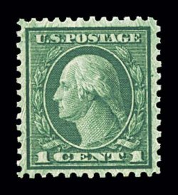900 nh 545 image#545, 1c Green coil waste, perf. 11, well centered within very large margins which are most uncharacteristic of this coil waste stamp, strong rich color and impression, pristine o.g., n.h., extremely fine for this difficult stamp; 1996 PF certificate. (Image) $425.00