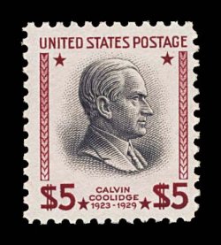 924 nh 834a image#834a, $5.00 Red brown and black error of color, an exceptionally handsome mint example of this very rare and popular error, brilliantly fresh, deep luxuriant colors and sharp detailed impressions, well centered and surrounded by crisp even perforations, flawless o.g., n.h., very fine and especially choice; 1995 PF certificate. (Image) $3,000.00