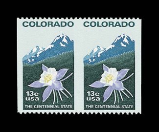 929 nh 1711b image#1711b, 13c Colorado, imperforate vertically, horizontal pair, wide margins, o.g., n.h., extremely fine; only 35 pairs recorded. (Image) $900.00