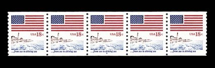 931 nh 1891 image#1891, 18c Flag and Anthem the rare plate no. 6 in a strip of five, o.g., n.h., extremely fine; the most sought-after of all the plate number coils in particularly select quality. (Image) $3,600.00