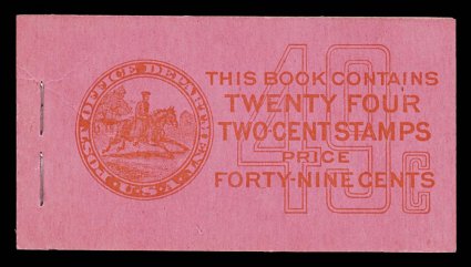 968 BK BK59 image#BK59, 1917 49c Red on pink complete unexploded booklet of four panes of 2c Rose (#499e), position A, panes with fine centering, o.g., n.h., pristine covers, very fine and choice booklet (Furman #BK59 BC5A IIj). (Image) $400.00