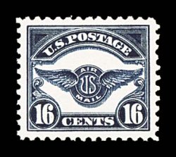 1002 nh C5 image#C5, 16c Dark blue, gem mint single, precisely centered within large margins, strong color on bright white paper, o.g., n.h., extremely fine; 2000 PF certificate. (Image) $140.00