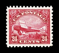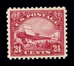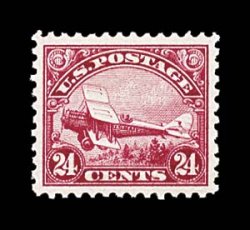1006 nh C6 image#C6, 24c Carmine, magnificent mint example, flawlessly centered amid huge margins, deep intense color, o.g., n.h., an extremely fine large-margined gem; of all the air mail first issues the 1923 Twenty-four Cent Carmine is the most difficult to find in such premium condition; 2004 PF certificate. (Image) $150.00