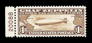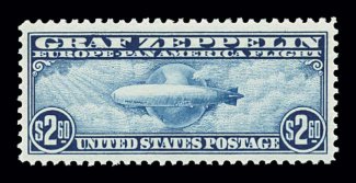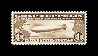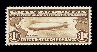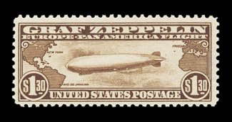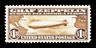 1014 nh C14 image#C14, $1.30 Graf Zeppelin, premium quality mint single, possessing mathematically precise centering within uncharacteristically large margins, deep rich color and a crisp impression, o.g., n.h., extremely fine gem; 2004 PF certificate. (Image) $700.00
