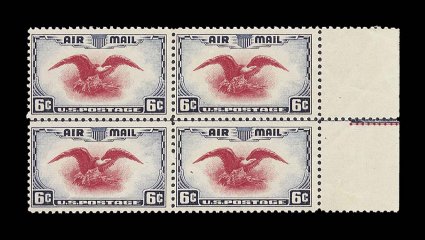 1016 nhbl C23 var. image#C23 var., 6c Ultramarine and carmine, right sheet-margin block of four with horizontal guide line, fresh true color, o.g., n.h., minor gum skips and bends as usual, fine; each signed H. Bloch and with light pencil position number. (Image) for hinged $600.00+