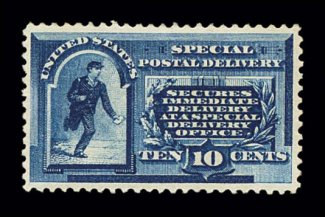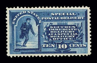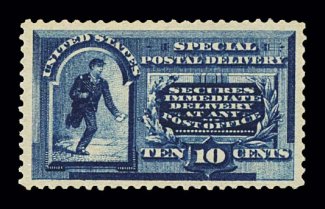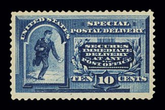 1017 og E1 image#E1, 10c Blue, outstanding centering within uncommonly large margins, rich bright color and a crisp impression, o.g., lightly hinged, extremely fine; quite scarce and desirable in this gem condition; 1997 PF certificate. (Image) $400.00