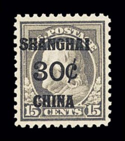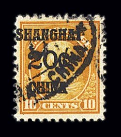 1089 O K10 image#K10, 20c on 10c Orange yellow, used, uncharacteristically well centered and margined, brilliantly fresh color on clean white paper, extremely fine; choice used examples of the Shanghai overprints are especially elusive; 1997 PSE certificate. (Image) $70.00