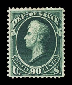 1102 og O67 image#O67, 90c State, bright mint single, lovely rich color and a razor-sharp impression on bright paper, quite well centered, full o.g., relatively lightly hinged, very fine for this scarce stamp; 1982 PF certificate. (Image) $850.00