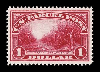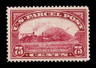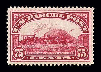 1142 nh Q11 image#Q11, 75c Parcel Post, flawlessly centered within large and wonderfully well balanced margins, strong rich color, pristine o.g., n.h., an extremely fine gem; 2000 APS certificate. (Image) $200.00