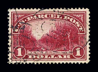 1145 O Q12 image#Q12, $1.00 Parcel Post, eye-catching used single, being perfectly centered within lavish large margins, deep luxuriant color and an especially vivid impression, lightly cancelled, extremely fine and exceedingly choice. (Image) $40.00