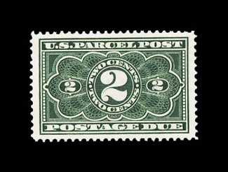 1147 nh JQ2 image#JQ2, 2c Parcel Post Postage Due, extraordinarily well centered amid lavishly large margins which are most uncharacteristic of the parcel postage due stamps, beautiful rich color on brilliantly white paper, o.g., n.h., extremely fine; actually a very difficult stamp to find in this impressive quality. (Image) $200.00