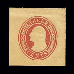 1149 og U6 image#U6, 3c Red on buff, rare mint cut square of the difficult die 3, full corner measuring 36x37mm, strong color, light horizontal bend at top and some really trivial corner creasing at top right, very fine appearance. (Image) $5,000.00