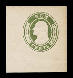 1150 og U17 image#U17, 10c Green on white, large mint full corner cut square, measuring 42x47mm, bright color and nicely embossed impression, very faint edge toning at right, otherwise extremely fine. (Image) $400.00