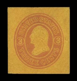 1153 og U37 image#U37, 3c Pink on orange, mint cut square, 30x32mm, central hinge thin, very fine appearance and rare; 1991 PF certificate; ex-Lyons. (Image) $5,500.00