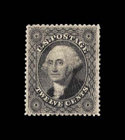 132 og 36b image#36b, 12c Black, plate III, attractive and choice mint single, with striking "jet" black color and a deeply etched impression, quite well centered, especially when one considers how narrowly spaced and poorly centered these generally come, full o.g., only the barest trace of hinging, very fine; photocopy of a 1979 PF certificate for a block of four, this being the bottom right stamp. (Image) $800.00