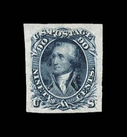 164 og 62a image#62a, 90c Blue "August" imperforate, unused, without gum as always found, four lavishly large margins, rich characteristic color and a sharp impression, extremely fine; a gem example of this scarce and seldom offered imperforate; 1968 PF certificate; ex-Bingham and Chapin. (Image) $2,750.00