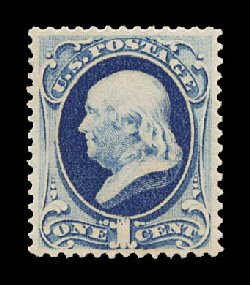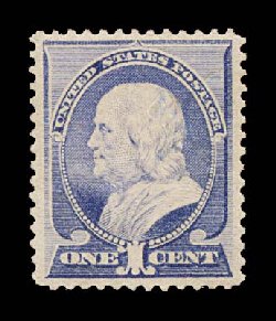 198 og 212 image#212, 1c Ultramarine, pristine mint single, exceptionally well centered and margined, bright color, o.g., barest trace of hinging (if at all), extremely fine. (Image) $120.00