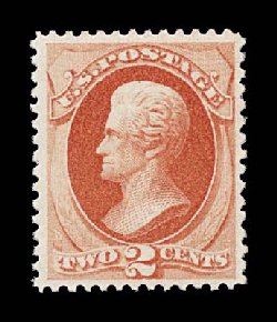 183 nh 183 image#183, 2c Vermilion, gem mint example, being in a true "post office" fresh state of preservation, strong vivid color and impression on pristine paper, exceptionally well centered, unblemished o.g., never hinged, extremely fine; 1997 PF certificate. (Image) for hinged $150.00