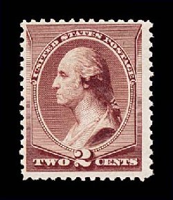 195 nh 210 image#210, 2c Red brown, precisely centered within large margins, strikingly intense color and impression on pristine paper, unblemished o.g., never hinged, extremely fine; a gem stamp for the perfectionist. (Image) $130.00