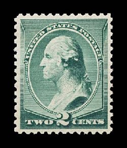 199 nh 213 image#213, 2c Green, select mint example of a relatively common stamp in anything but common condition, brilliantly fresh, prooflike color and impression on crisp paper, near perfect centering, unblemished o.g., never hinged, extremely fine gem; 1999 PF certificate. (Image) $125.00