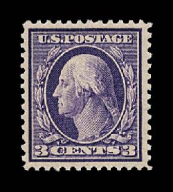 318 og 359 image#359, 3c Deep violet on bluish paper, marvelously well centered within uncharacteristically large margins, especially fresh overall, with gorgeous intense color and a razor-sharp impression on crisp paper, unusually even and intact perforations all around, o.g., lightly hinged, extremely fine; a particularly choice Three Cent Bluish Paper; 1993 PF certificate. (Image) $2,000.00