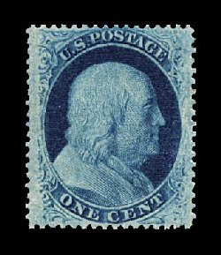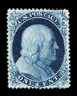 33 og 24 image#24, 1c Blue, Ty. V, pristine mint single, marvelously well centered, rich luxuriant color and impression, full o.g., lightly hinged, extremely fine. (Image) $175.00