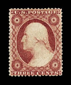 35 nh 26 image#26, 3c Dull red, Ty. II, brilliant "post office" fresh mint single, vibrant color on crisp paper, particularly well centered, immaculate o.g., never hinged, very fine and choice. (Image) for hinged $75.00