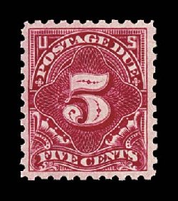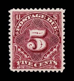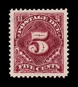 481 og J34 image#J34, 5c Deep claret, exceptionally choice mint single, being marvelously well centered within uncharacteristically large margins, bright fresh color, o.g., lightly hinged, extremely fine. (Image) $325.00