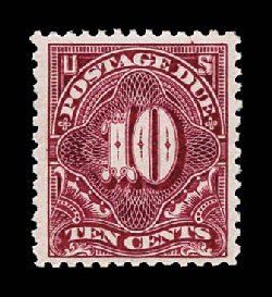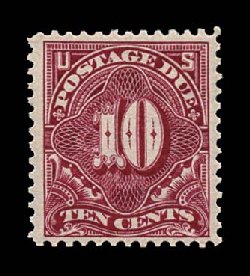 482 og J35 image#J35, 10c Deep claret, brilliantly fresh, deep luxuriant color and a razor-sharp impression on bright paper, well centered within unusually wide margins, full clean o.g., very lightly hinged, certainly extremely fine considering this stamp's overall attributes. (Image) $325.00