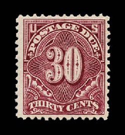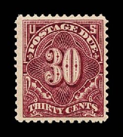 489 og J43 image#J43, 30c Deep claret, a highly desirable mint example of this difficult and scarce postage due, possessing particularly wide margins and being extraordinarily well centered within them, rich color, full o.g., lightly hinged, extremely fine. (Image) $600.00