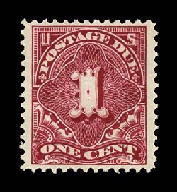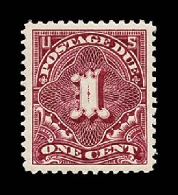 485 nh J38 image#J38, 1c Deep claret, a striking mint example of this relatively common stamp in not-so-common condition, with huge jumbo margins all around and being virtually perfectly centered within these lavish borders, bright and "post office" fresh, o.g., n.h., extremely fine; a lovely little gem. (Image) $23.50