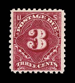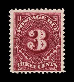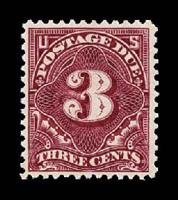 493 nh J47 image#J47, 3c Deep claret, "post office" fresh example of one of the most difficult postage dues to find in premium quality, quite well centered amid considerably larger margins than typically found, rich luxuriant color, o.g., n.h., very fine and choice. (Image) $1,300.00