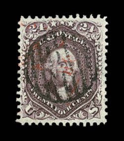206 O 70 image#70, 24c Red lilac, a lovely used single, possessing outstanding rich color and impression, and being exceptionally well centered within large margins, petite circular cancel at top, extremely fine and remarkably choice; 1994 PSE and 1999 PF certificates. (Image) $250.00