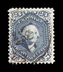 209 O 70b image#70b, 24c Steel blue, handsome used example of this rare shade, featuring much deeper and stronger color than typically encountered, well centered within large margins, light strike of a double ring town c.d.s., choice very fine. (Image) $900.00