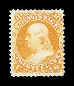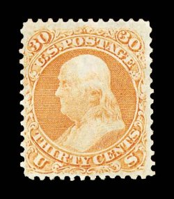 210 ng 71 image#71, 30c Orange, especially attractive unused example, quite well centered within large margins, plus nice even perforations all around, bright color, very fine. (Image) $800.00