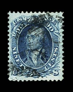 217 O 72 image#72, 90c Blue, attractive used single of this high value, unusually well centered within very large margins, especially deep vibrant color and a razor-sharp impression on crisp paper, extremely fine and handsome; 1994 PF certificate. (Image) $450.00