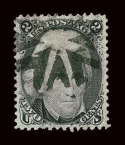 218 O 73 image#73, 2c Black, used, extraordinarily well centered within especially large margins for this stamp, fresh color, unusually light town c.d.s. cancel, extremely fine; 2004 PF and PSE certificates. (Image) $50.00