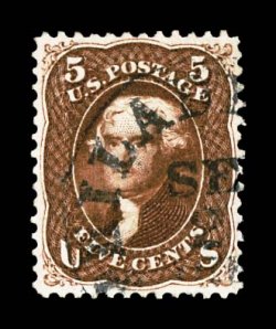 220 O 75 image#75, 5c Red brown, premium used example of this always challenging stamp, boasting absolutely flawless centering within large margins, in fact no portion of the design is impinged by perforations which is a very rare trait on this, gorgeous rich color and a prooflike impression on brilliantly white paper, neat portion of a Philadelphia, Pa. c.d.s., extremely fine; a lovely used gem. (Image) $500.00