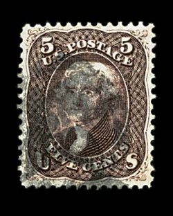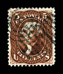 225 O 76 image#76, 5c Brown, an extraordinary quality used example of this surprisingly difficult stamp, wonderfully well centered within uncharacteristically large margins, in fact no portion of its design has been impinged by perforations (a rare occurrence), attractive rich color and a razor-sharp impression, extremely fine; 1998 PF certificate. (Image) $140.00