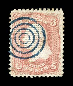 232 O 83 image#83, 3c Rose, "C" grill, an exceptional used single that is uncharacteristically well centered within larger margins than often encountered on this grill, strong color and impression, neatly struck blue target cancel, extremely fine for this very difficult stamp; 2000 PF certificate. (Image) $1,125.00