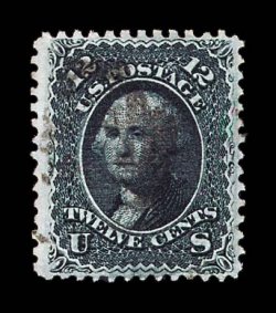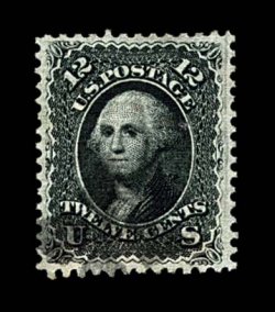 239 O 85E image#85E, 12c Black, "Z" grill, an exciting used single that is the most perfectly centered example of this notoriously difficult stamp we have encountered in quite some time, plus it is one of the very few #85E's in existence whose perforations do not cut the design on any side, intense color and strong impression characteristic of this stamp, clear grill impression, lightly cancelled, extremely fine; a true condition rarity; 1992 and 2001 PF certificates. (Image) $1,900.00