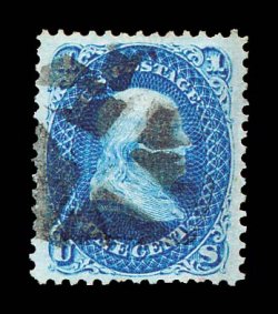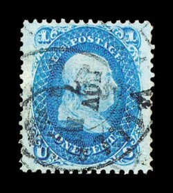 260 O 92 image#92, 1c Blue, "F" grill, a remarkable quality used example of one of the most challenging of all the 1867 grilled issues to find in true gem condition, featuring essentially perfect centering within lavishly large margins, gorgeous rich color and a deeply etched impression on bright paper, very lightly and unobtrusively postmarked with a target cancel, extremely fine in every regard; the epitome of a condition rarity; 2004 PF certificate. (Image) $525.00