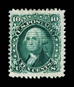 247 og 89 image#89, 10c Green, "E" grill, a magnificently fresh and bright example of a stamp that is missing in even the most advanced collections of mint United States stamps, possessing strikingly intense color in a deep shade, plus its impression is razor sharp on bright crisp paper, quite well centered amid uncharacteristically large margins, even its reverse is uncommonly choice, featuring especially clean full o.g. that has been only very lightly hinged, very fine; 1997 PF certificate; ex-McKinney. (Image) $5,000.00
