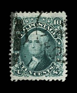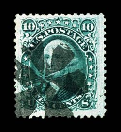 248 O 89 image#89, 10c Green, "E" grill, a striking jumbo used single, featuring among the most gigantic margins we have ever seen on this stamp and being quite well centered within these massive borders, deep rich color and a detailed impression, circle of wedges cancel, extremely fine; 1982 PF certificate. (Image) $325.00